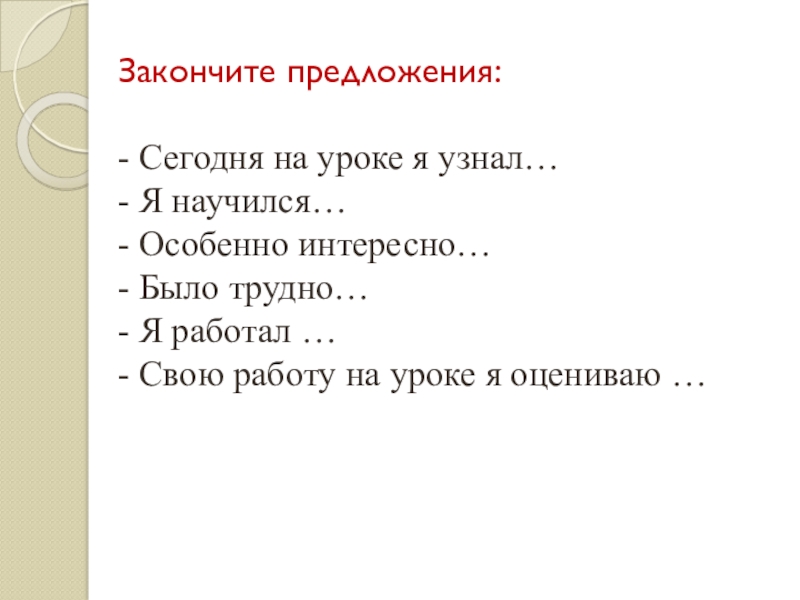- Сегодня на уроке я узнал…