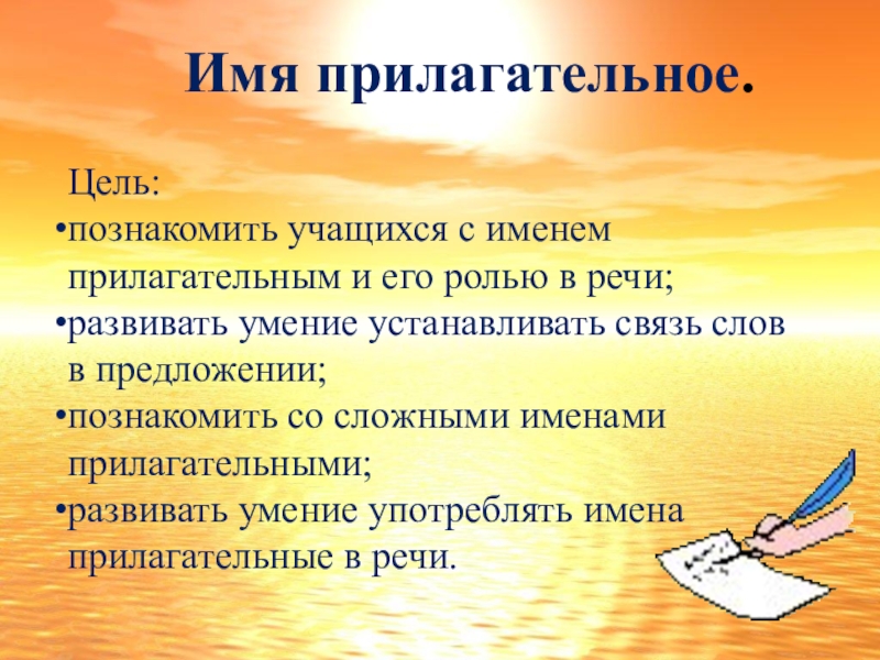 познакомить учащихся с именем прилагательным и его ролью в