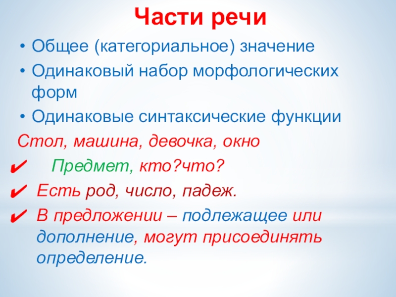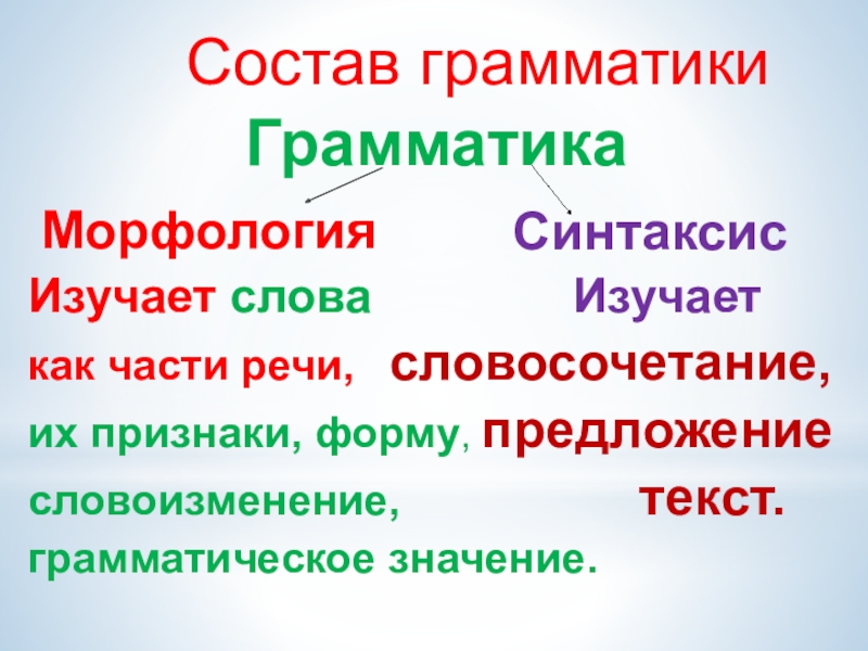 Предмет: грамматические признаки слов (часть речи, правила изменения и др.)