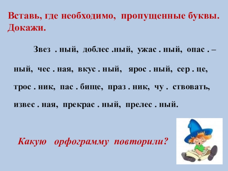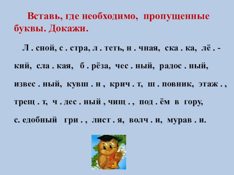 Вставь, где необходимо, пропущенные буквы. Докажи.