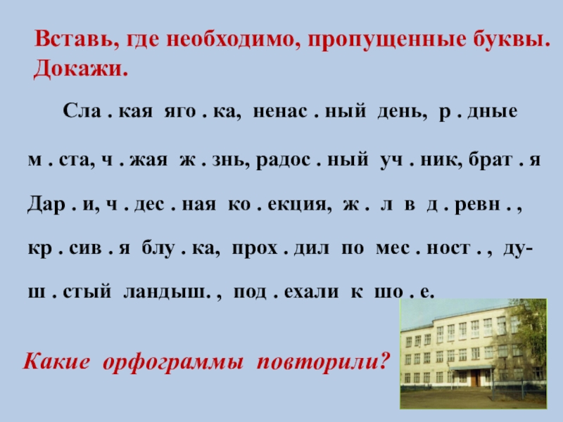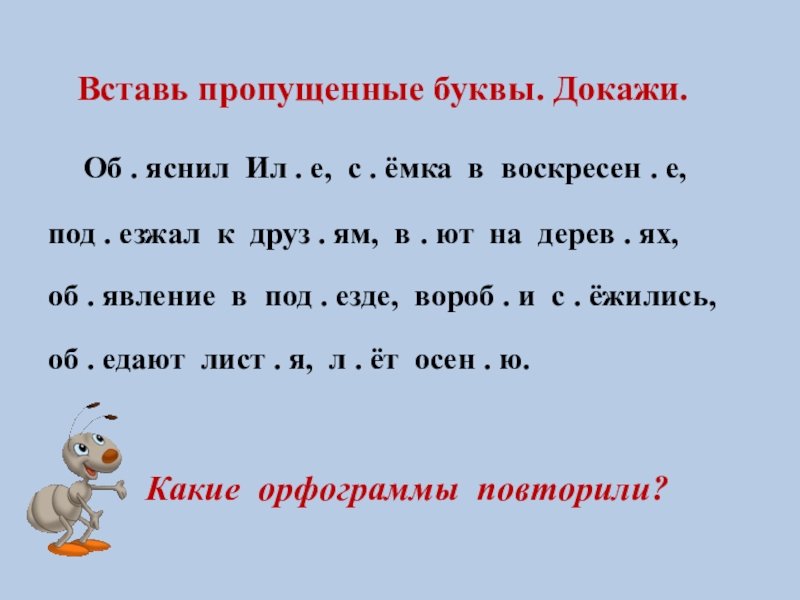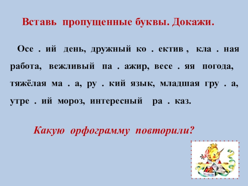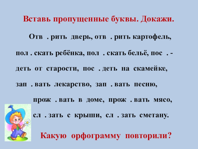 Вставь пропущенные буквы. Докажи.