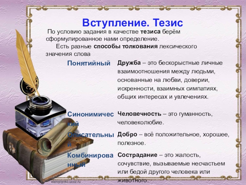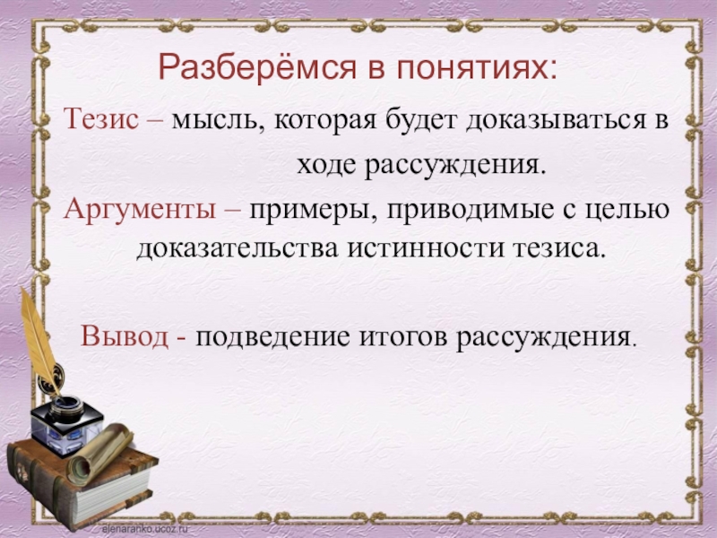 Слайд 12 По условию задания в качестве тезиса берём сформулированное нами определение.