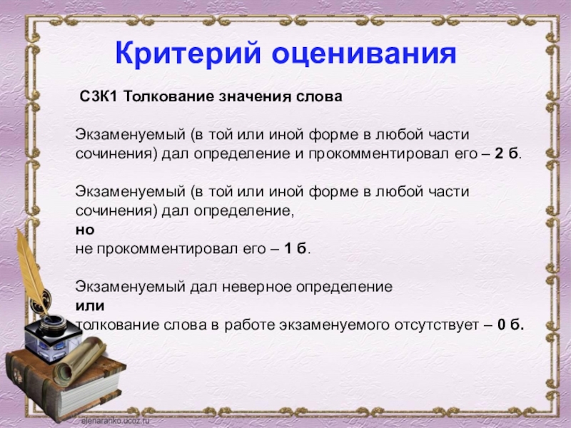 толкование слова в работе экзаменуемого отсутствует – 0 б.