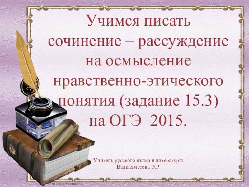 Слайд 1Учимся писать сочинение – рассуждение