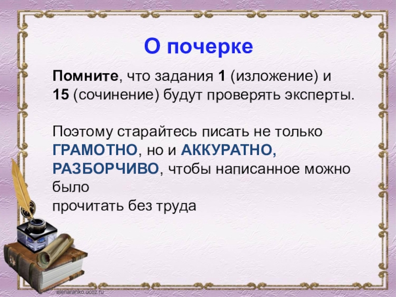 Поэтому старайтесь писать не только ГРАМОТНО, но и АККУРАТНО, РАЗБОРЧИВО, чтобы написанное можно было