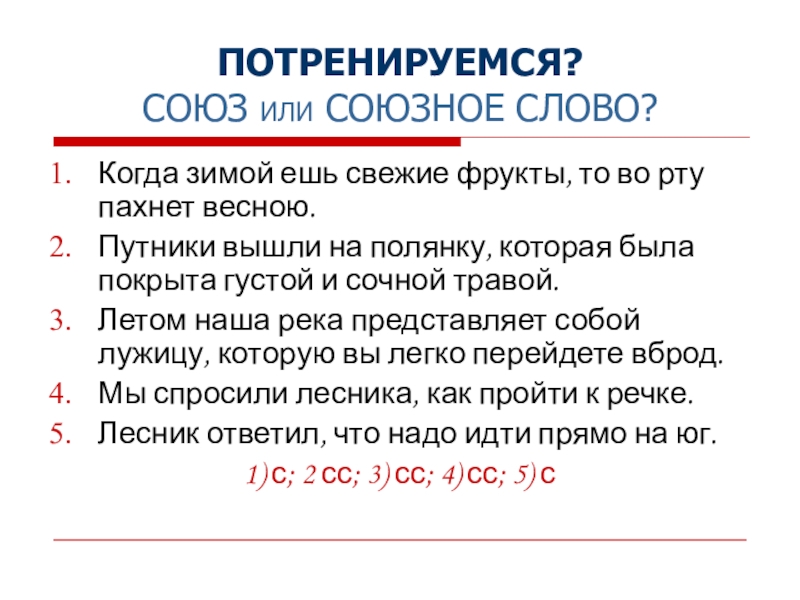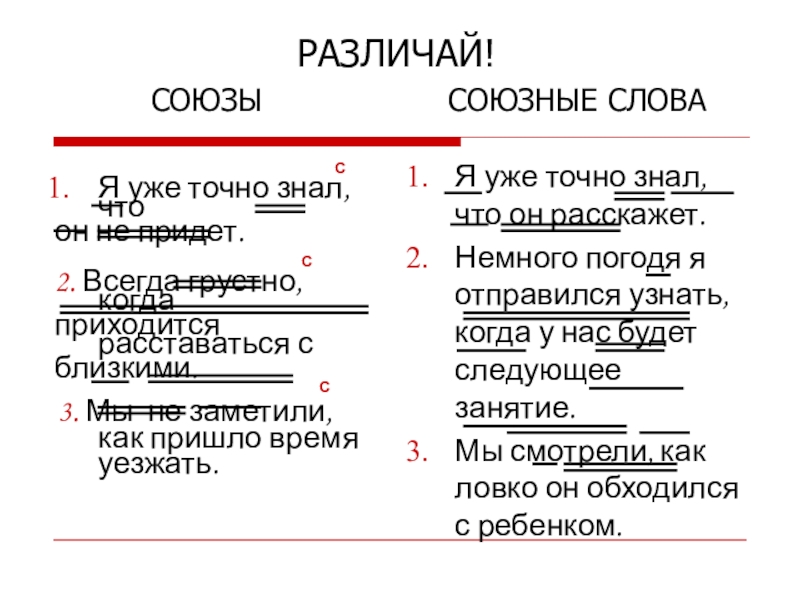 СОЮЗНЫЕ СЛОВА: кто, что, какой, чей, который, сколько, как, когда, где, куда, откуда, отчего, почему, зачем.