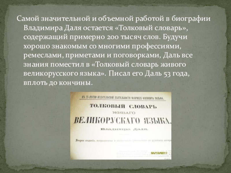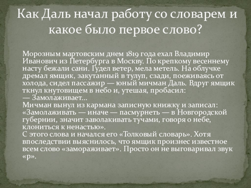 Как Даль начал работу со словарем и какое было первое слово?