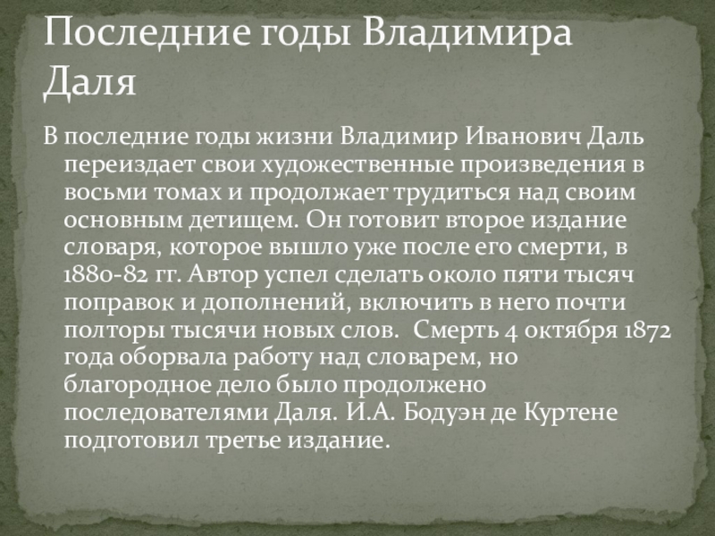 Последние годы Владимира Даля