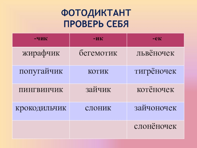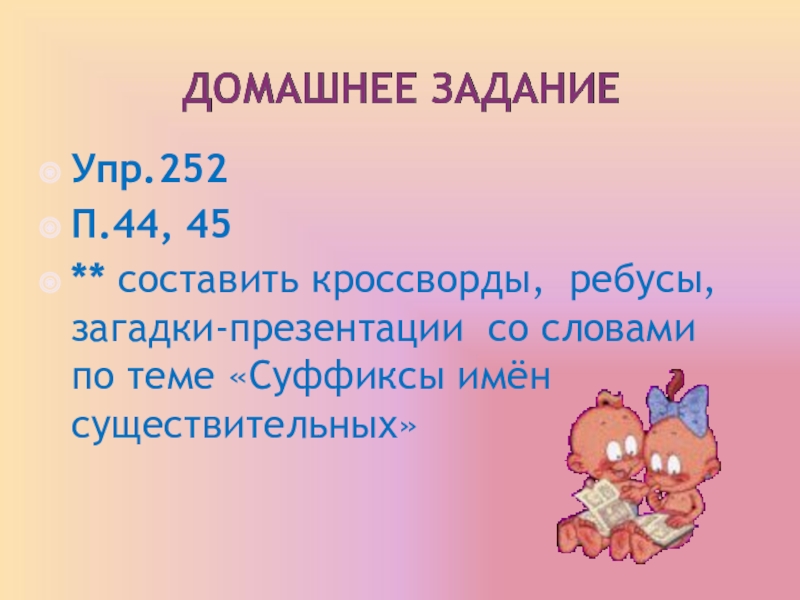 ** составить кроссворды, ребусы, загадки-презентации со словами по теме «Суффиксы