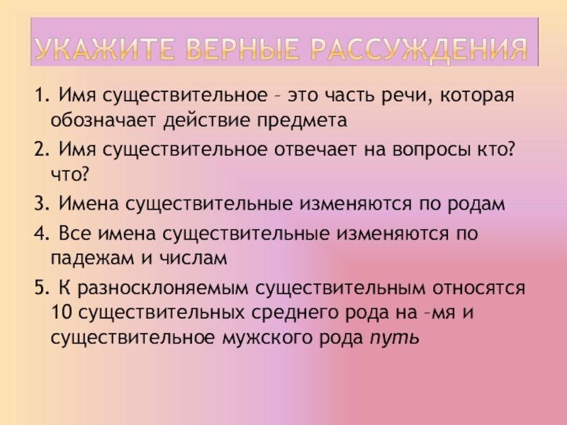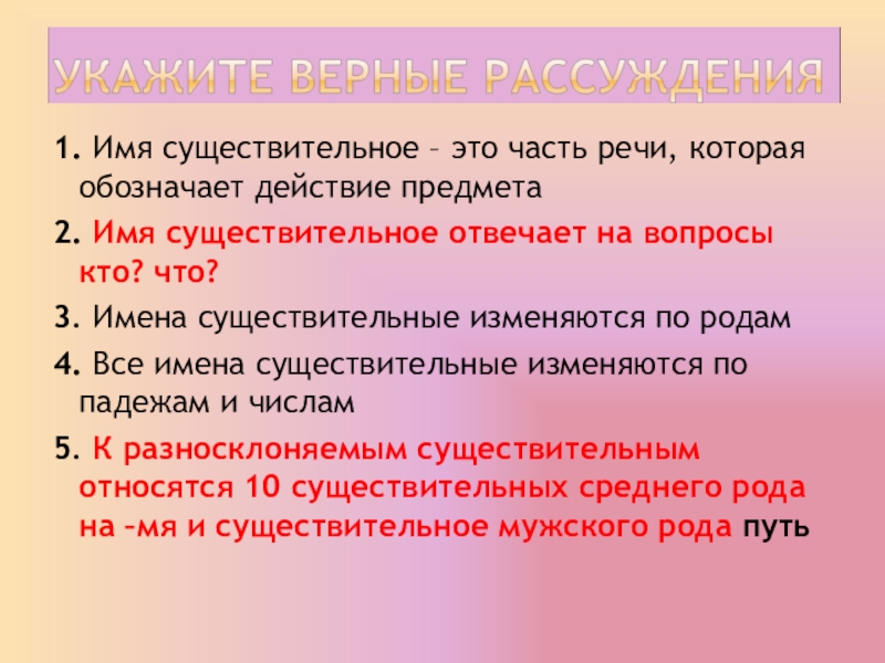 5. К разносклоняемым существительным относятся 10 существительных среднего рода на –мя и существительное мужского рода путь