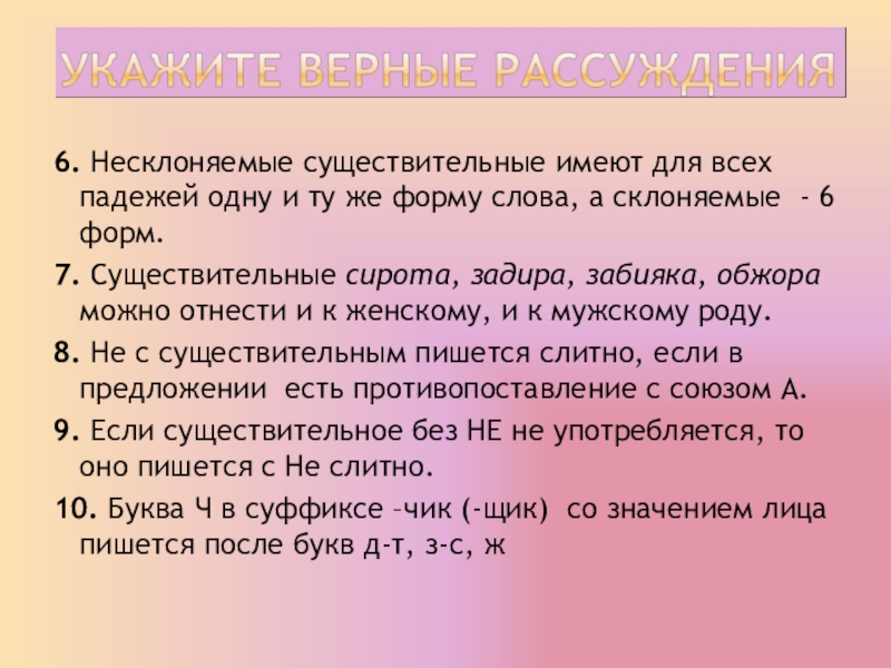 7. Существительные сирота, задира, забияка, обжора можно отнести и к женскому, и к мужскому роду.