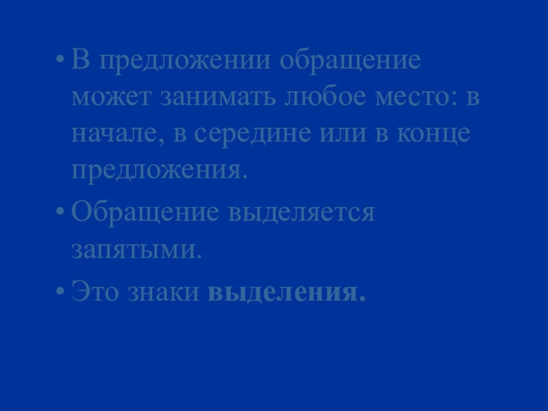 Слайд 10В предложении обращение может занимать любое место: в начале, в середине
