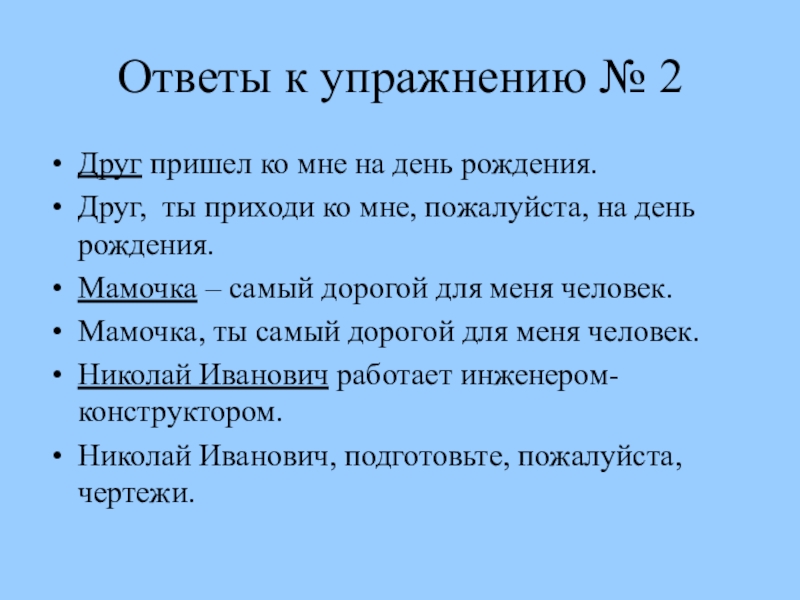 Слайд 17Ответы к упражнению № 2