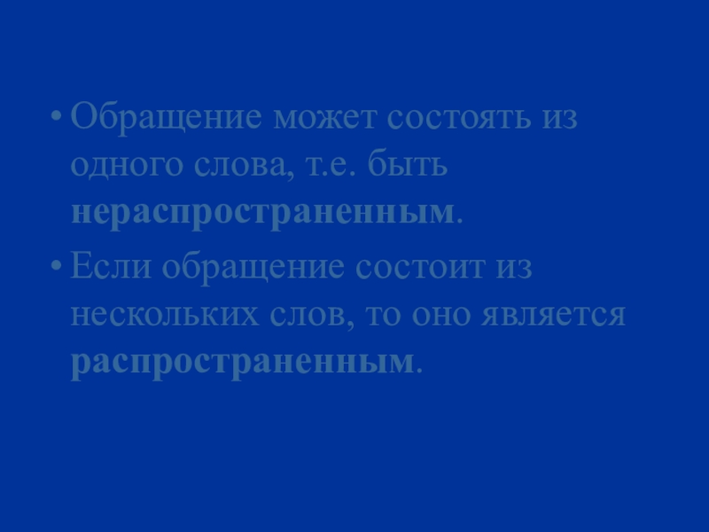 Слайд 8Обращение может состоять из одного слова, т.е. быть нераспространенным.