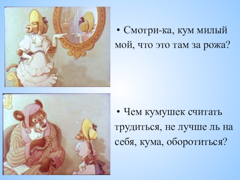 Слайд 7Смотри-ка, кум милый
