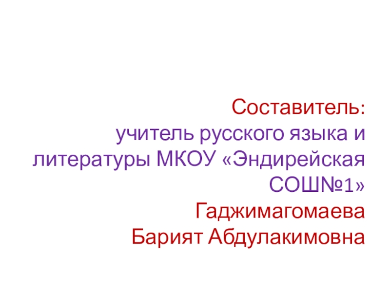 Составитель:  учитель русского языка и литературы МКОУ «Эндирейская СОШ№1»  Гаджимагомаева  Барият