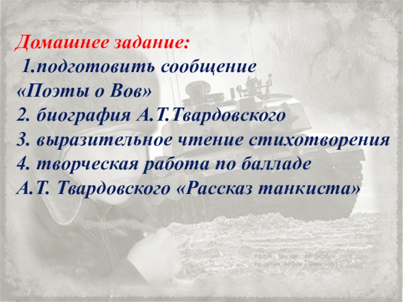 стихотворения 4. творческая работа по балладе А.Т. Твардовского «Рассказ танкиста»