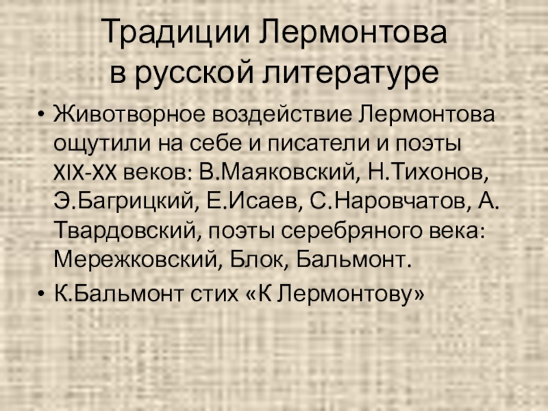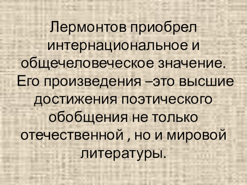 Слайд 37Лермонтов приобрел интернациональное и общечеловеческое значение.