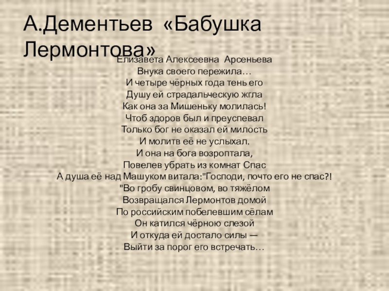 Слайд 7А.Дементьев «Бабушка Лермонтова»