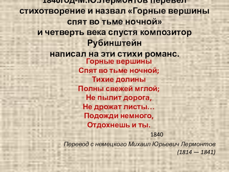 “Горные вершины” “Қараңғы түнде тау қалғып”