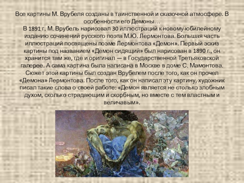 Все картины М. Врубеля созданы в таинственной и сказочной атмосфере. В