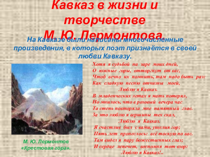 многочисленные произведения, в которых поэт признаётся в своей любви Кавказу.