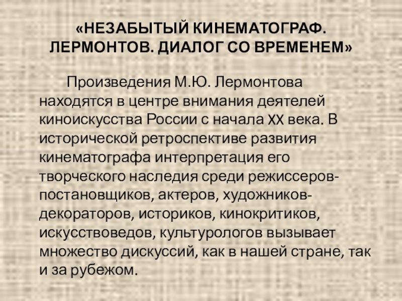 Слайд 23«НЕЗАБЫТЫЙ КИНЕМАТОГРАФ. ЛЕРМОНТОВ. ДИАЛОГ СО ВРЕМЕНЕМ»