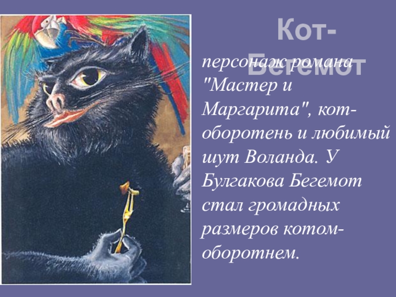 персонаж романа "Мастер и Маргарита", кот-оборотень и любимый шут Воланда. У