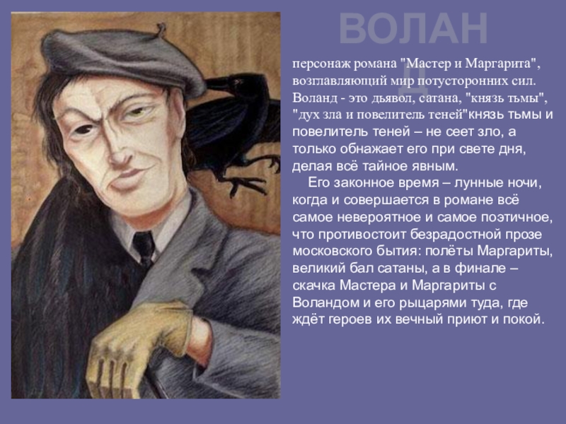 персонаж романа "Мастер и Маргарита", возглавляющий мир потусторонних сил. Воланд -