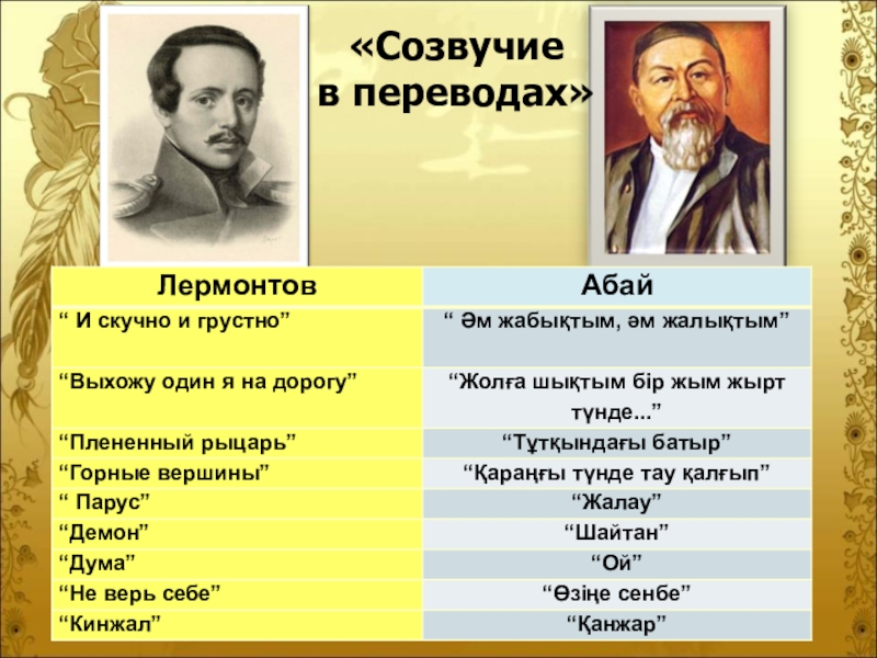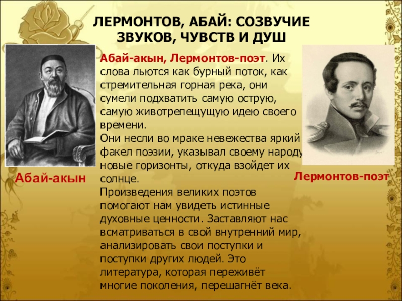ЛЕРМОНТОВ, АБАЙ: СОЗВУЧИЕ ЗВУКОВ, ЧУВСТВ И ДУШ