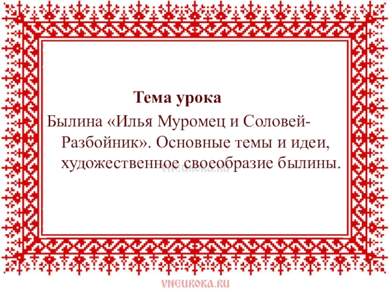 Былина «Илья Муромец и Соловей-Разбойник». Основные темы и идеи, художественное своеобразие былины.
