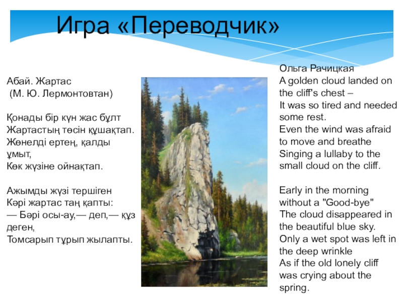 В) неподвижность утёса 2) утро