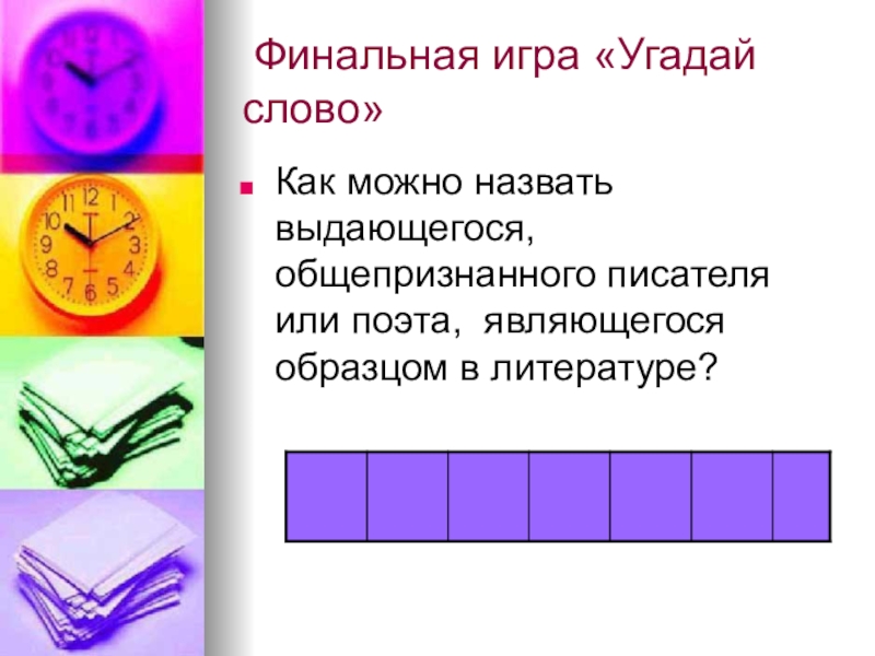 Слайд 31 отборочный тур «Знаете ли вы писателей 19 века и их