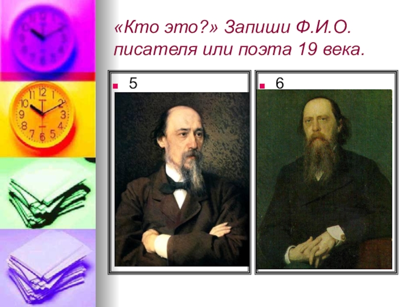 Слайд 5«Кто это?» Запиши Ф.И.О. писателя или поэта 19 века.