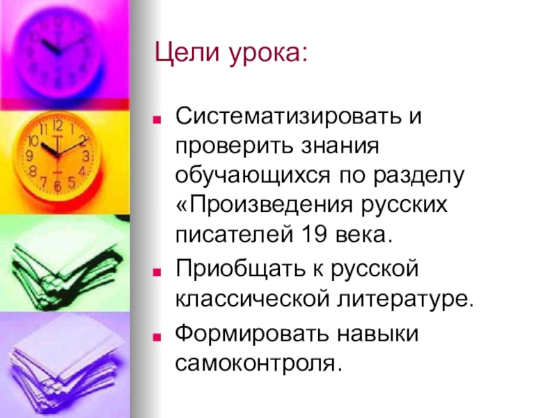Систематизировать и проверить знания обучающихся по разделу «Произведения русских писателей
