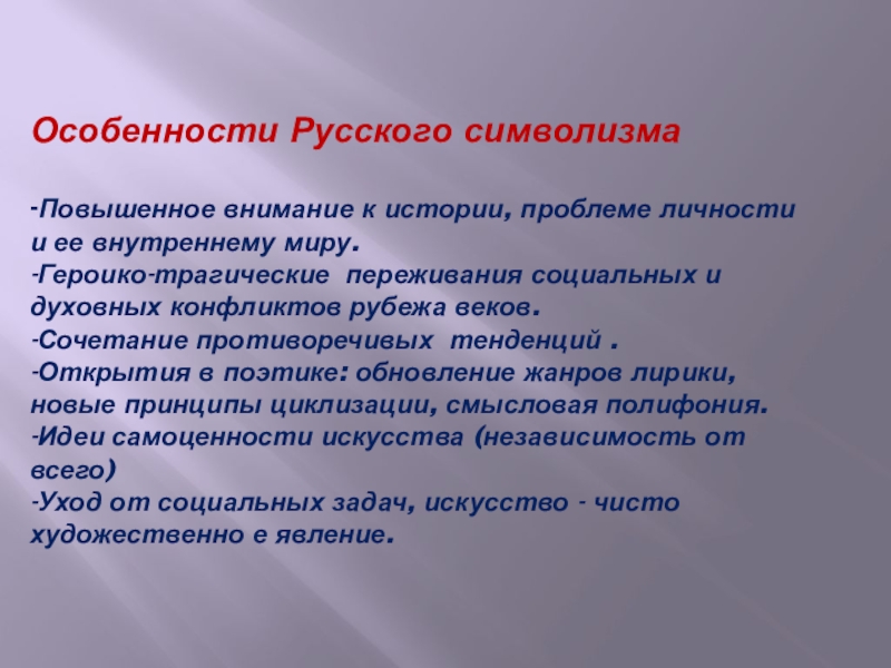 Три элемента: мистическое содержание, символы, расширение художественной впечатлительности.