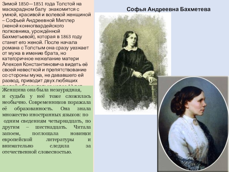 и судьба у неё тоже сложилась необычно. Современников поражала её образованность. Она знала множество иностранных языков: по