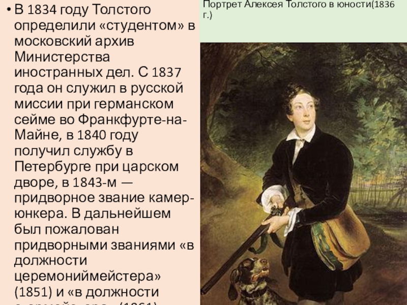 А.ТОЛСТОЙ в юности А.К.ТОЛСТОЙ. Фото 1860-х годов