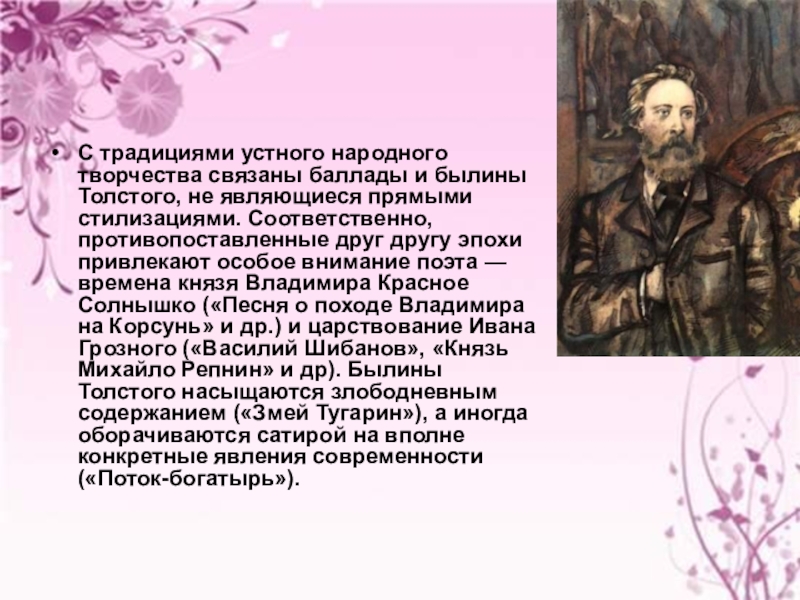 Слайд 14С традициями устного народного творчества связаны баллады и былины Толстого, не