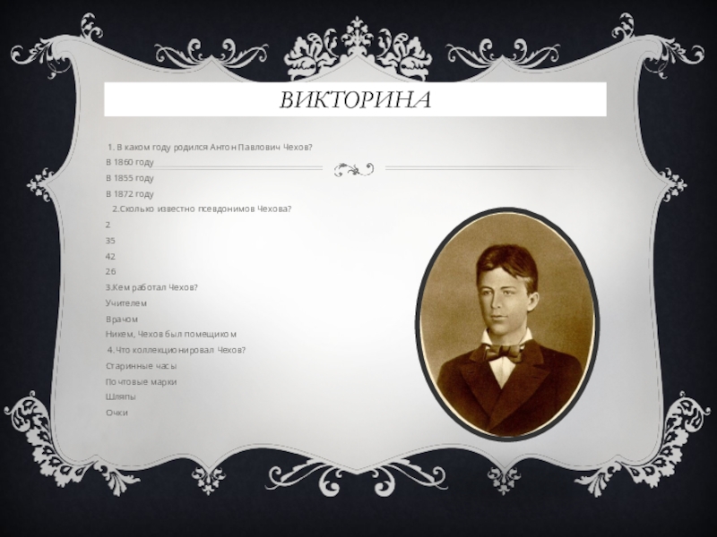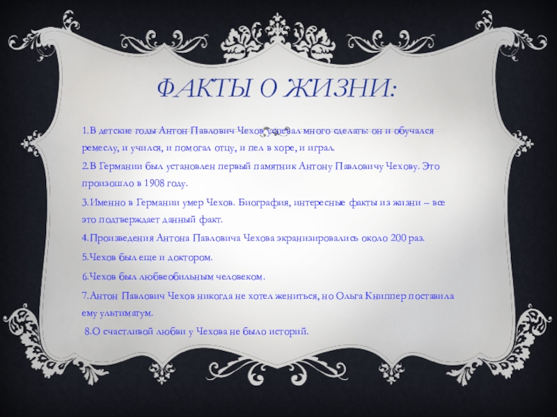 4.Произведения Антона Павловича Чехова экранизировались около 200 раз.