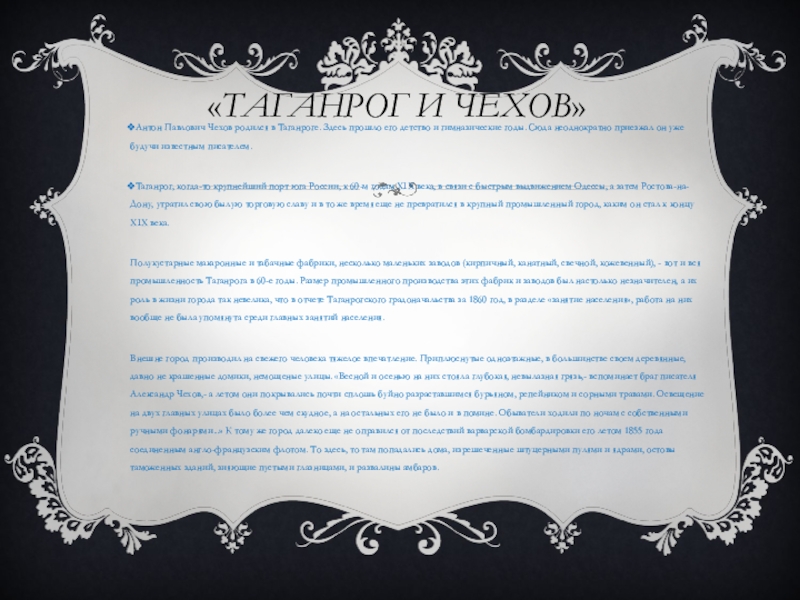 Слайд 2«ТАГАНРОГ И ЧЕХОВ»