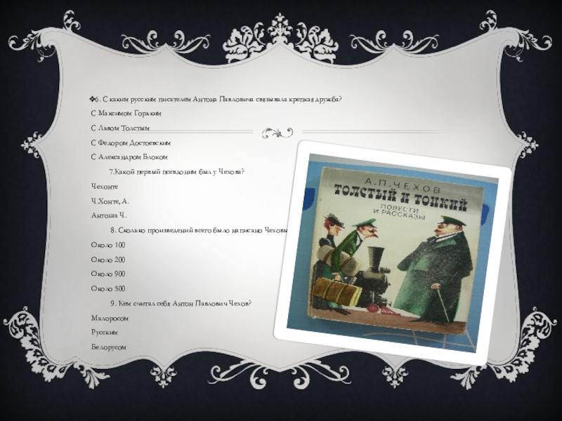Слайд 66. С каким русским писателем Антона Павловича связывала крепкая дружба?
