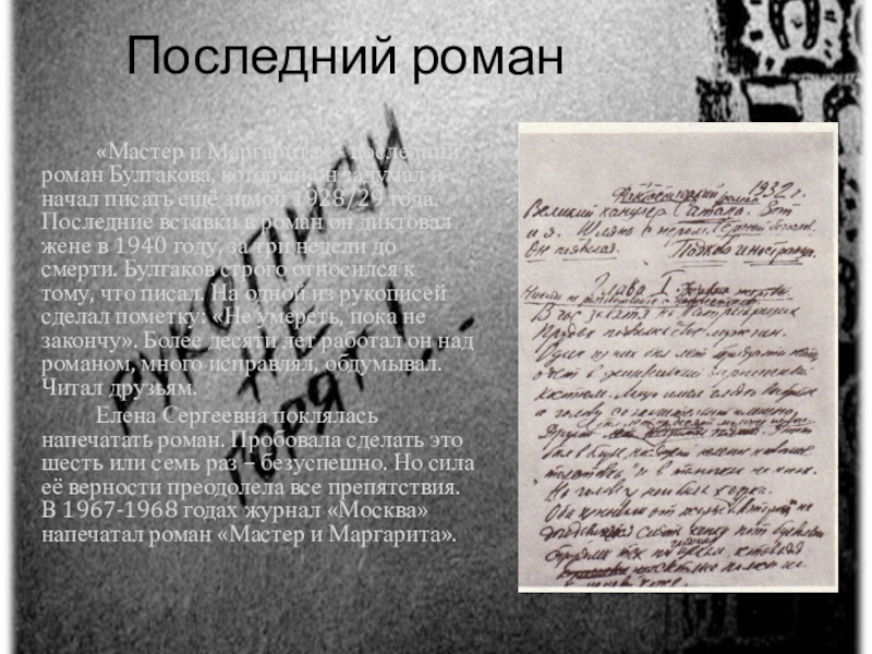 «Мастер и Маргарита» - последний роман Булгакова, который он задумал