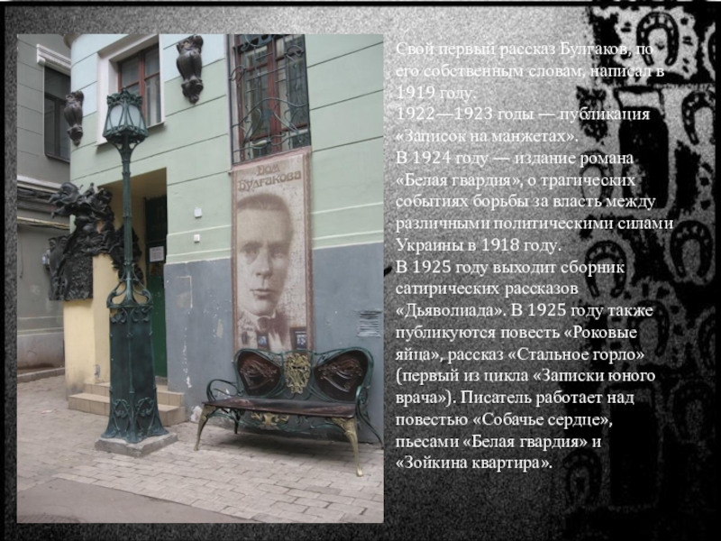 Слайд 12Свой первый рассказ Булгаков, по его собственным словам, написал в 1919