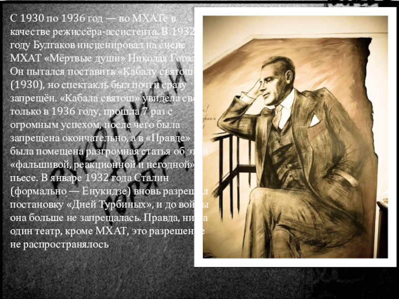 Слайд 9С 1930 по 1936 год — во МХАТе в качестве режиссёра-ассистента.