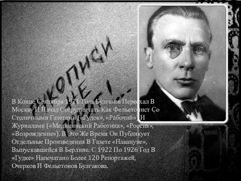 Слайд 5В Конце Сентября 1921 Года Булгаков Переехал В Москву И Начал