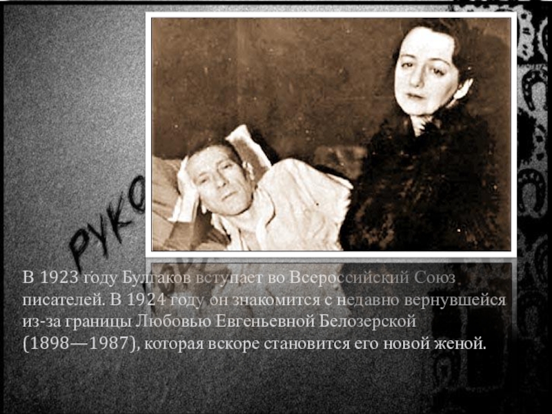 Слайд 6В 1923 году Булгаков вступает во Всероссийский Союз писателей. В 1924