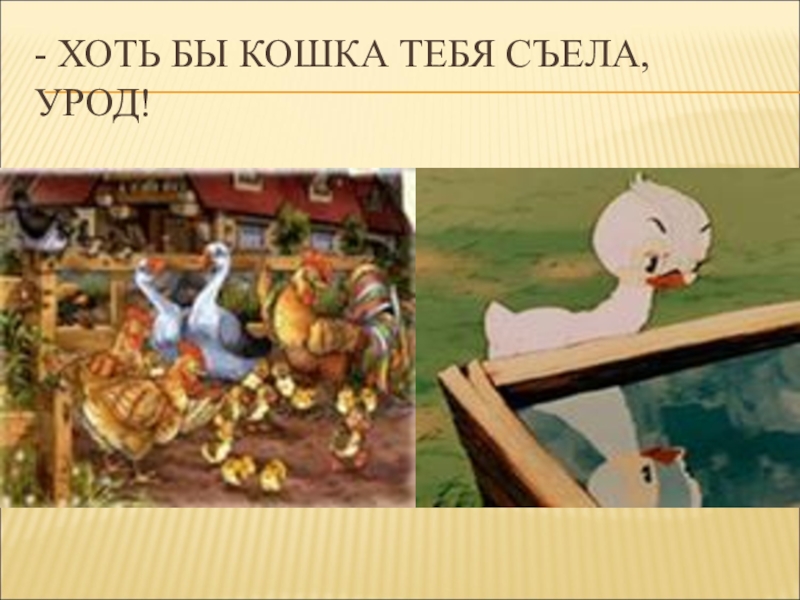 Слайд 6- ХОТЬ БЫ КОШКА ТЕБЯ СЪЕЛА, УРОД!