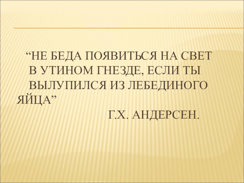УТИНОМ ГНЕЗДЕ, ЕСЛИ ТЫ ВЫЛУПИЛСЯ ИЗ ЛЕБЕДИНОГО ЯЙЦА” Г.Х. АНДЕРСЕН.