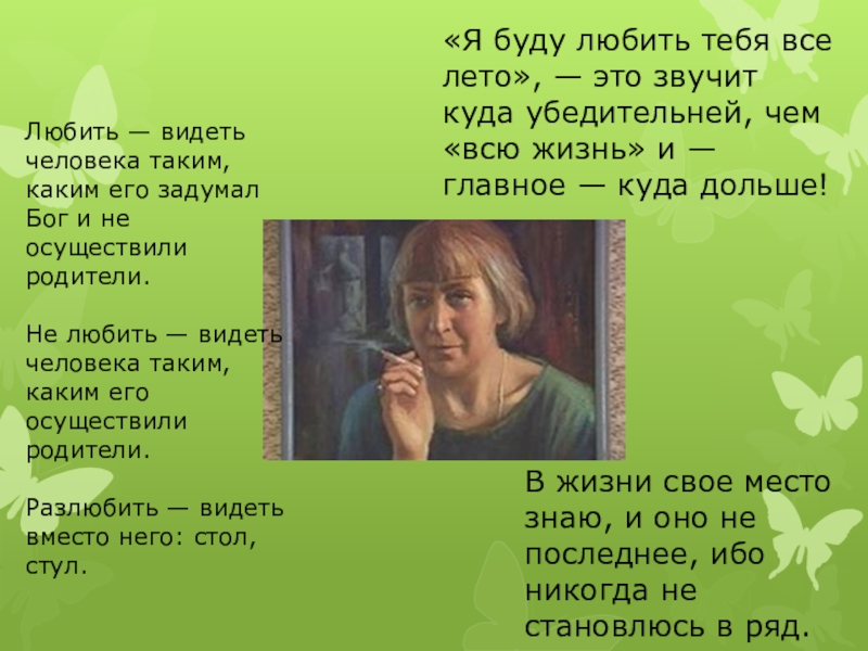 Не любить — видеть человека таким, каким его осуществили родители.